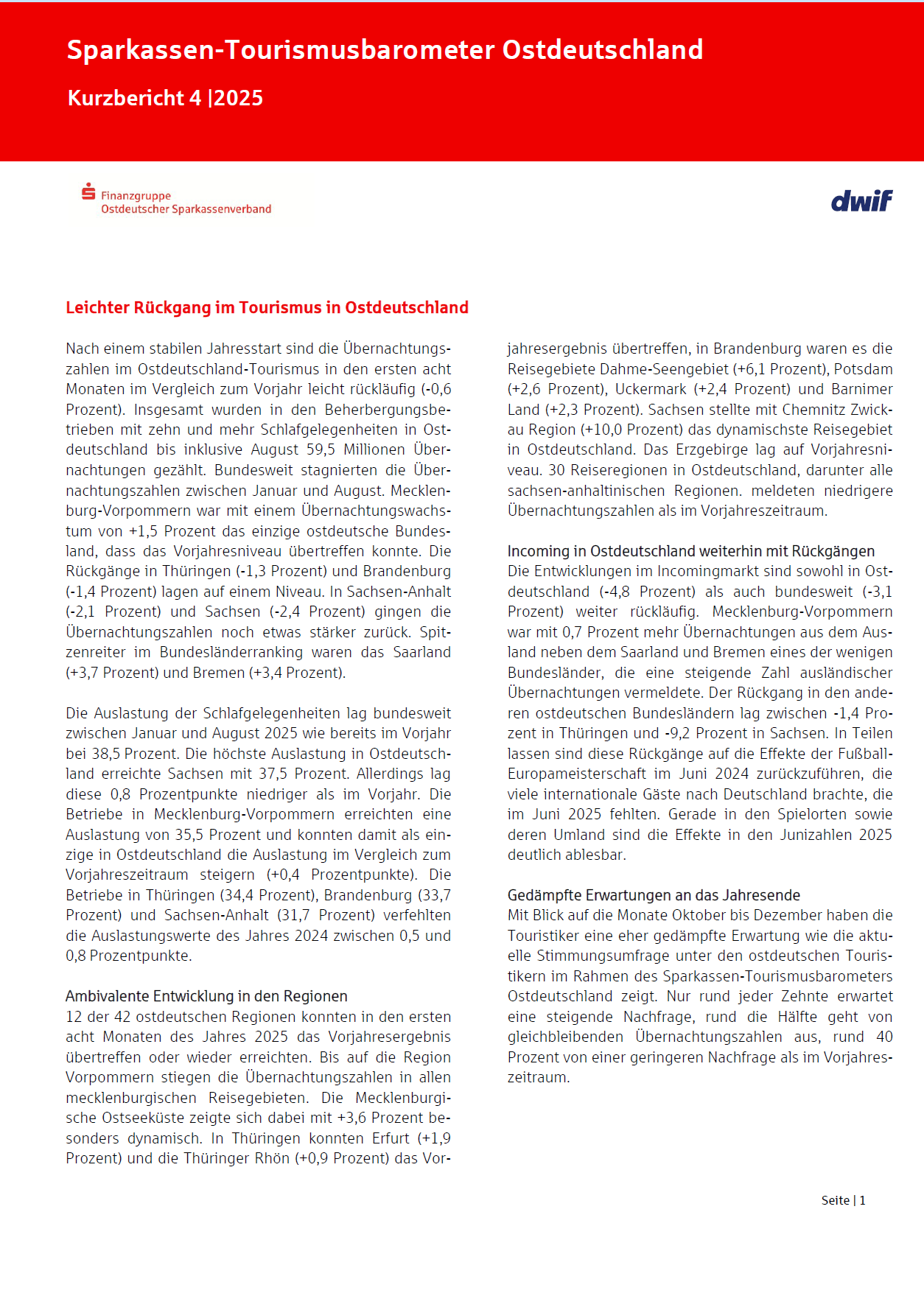 Sparkassen-Tourismusbarometer Ostdeutschland Kurzbericht 4 2025