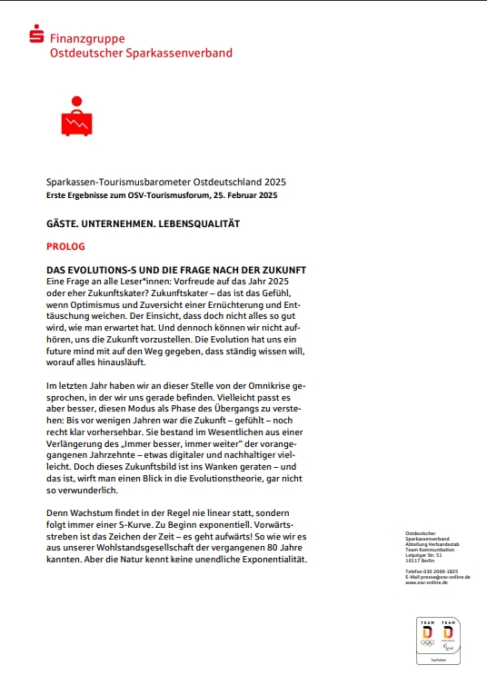 Sparkassen-Tourismusbarometer Ostdeutschland Kurzbericht 1 2025